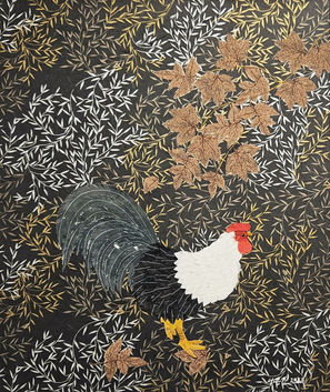 서은진의 작품 세계를 관통하는 핵심은 한지와 전통적 상징, 그리고 평온한 정서다. 그의 화면에는 닭과 새, 숲과 나비 같은 존재들이 자주 등장한다. 이는 단순한 자연 묘사가 아니라, 인간의 삶과 염원을 은유하는 상징적 장치다. 특히 닭과 새는 한국 전통 자수와 민화에서 길상(吉相)의 의미를 지닌 존재로 오랫동안 사용돼 왔다. 번영과 희망, 새로운 시작을 상징하는 이 이미지들은 그의 작품 속에서 현대적으로 재해석된다.